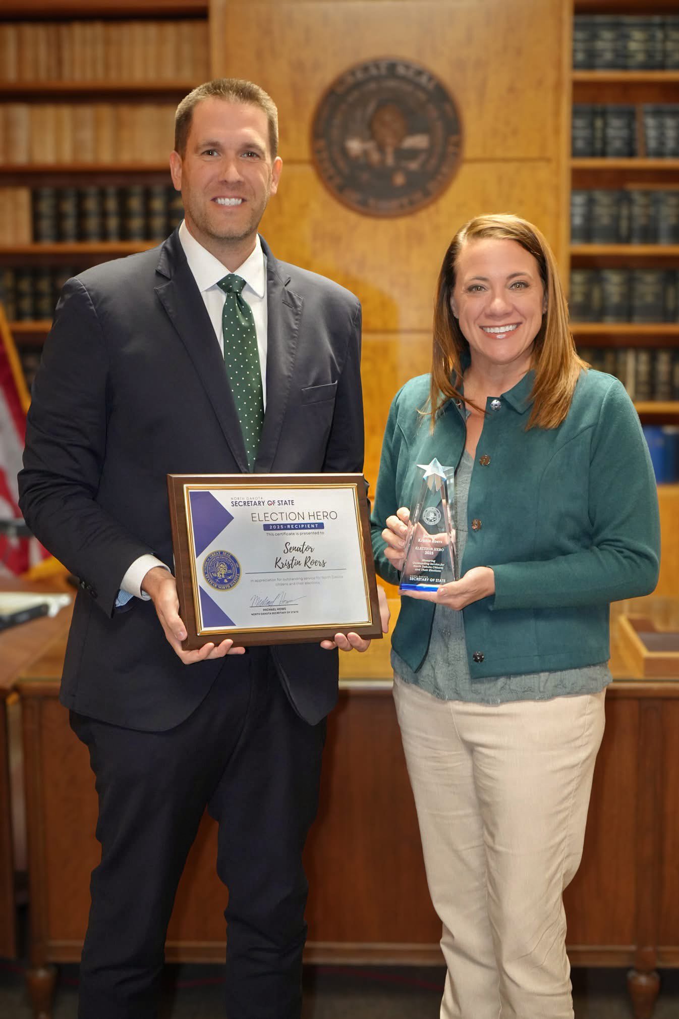 In 2025, Kristin was honored with North Dakota’s Election Hero Award for her commitment to election integrity. Her hands-on experience as an election worker at all levels, combined with her legislative advocacy, underscores her belief in free, fair, and secure elections.
